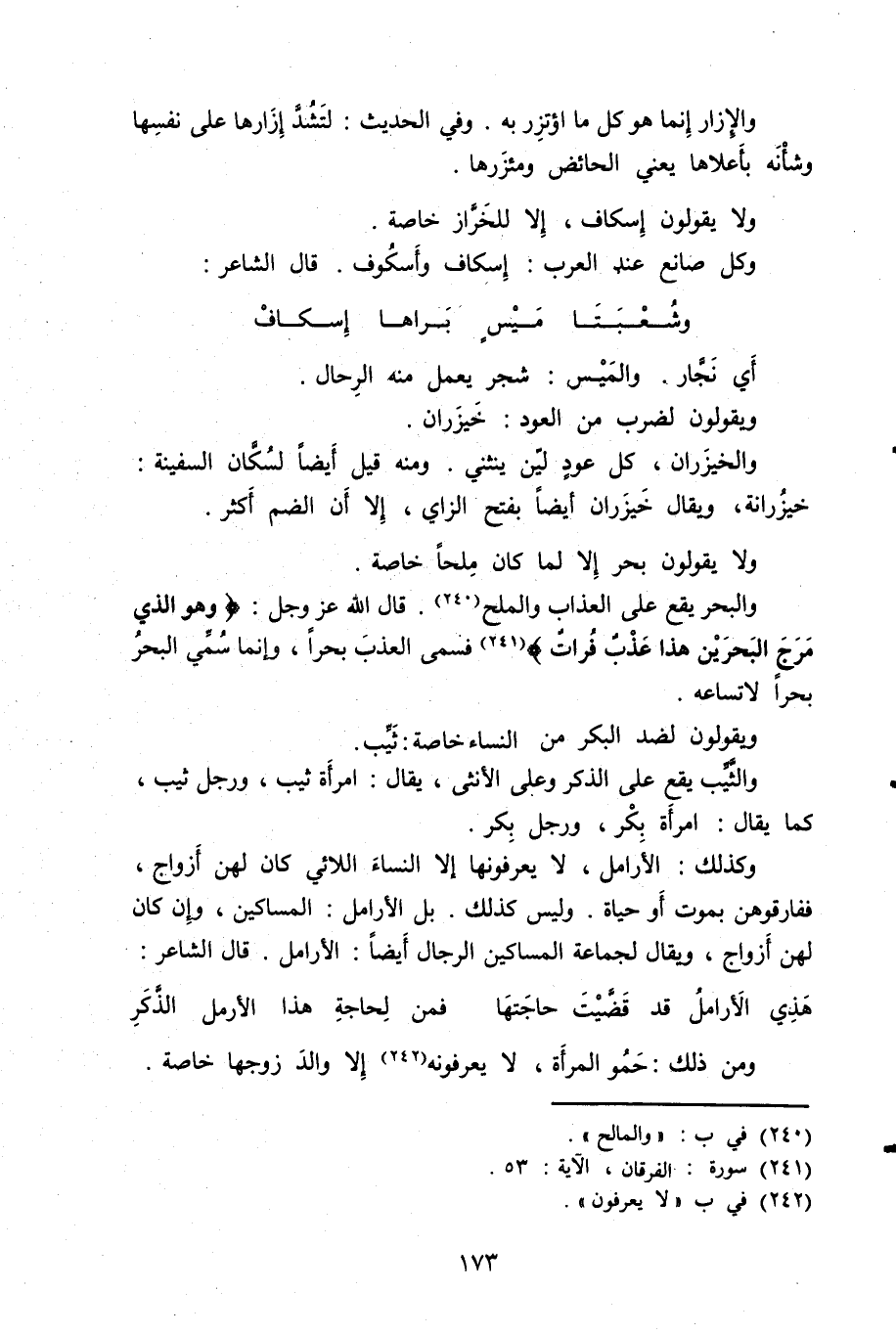 وكذلك: الأرامل، لا يعرفونها إلا النساء اللائي كان لهن أزواج، ففارقوهن بموت أو حياة، وليس كذلك. بل الأرامل: المساكين، وإن كان لهن أزواج، ويقال لجماعة المساكين الرجال أيضا: الأرامل. قال الشاعر: