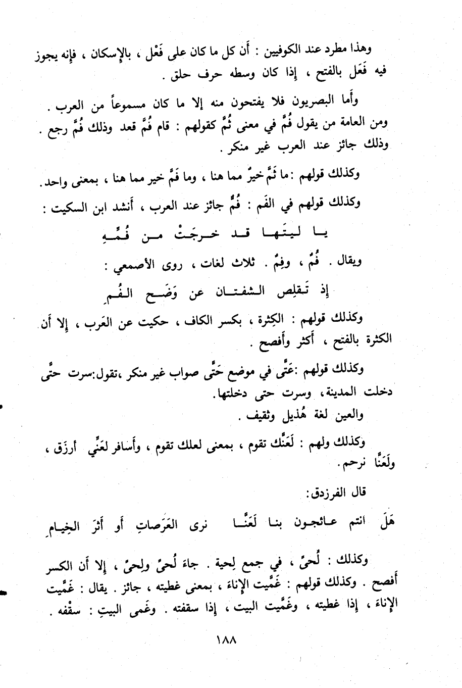 وكذلك ولهم: لعنك تقوم، بمعنى لعلك تقوم، وأسافر لعنى أرزق، ولعنا نرحم.