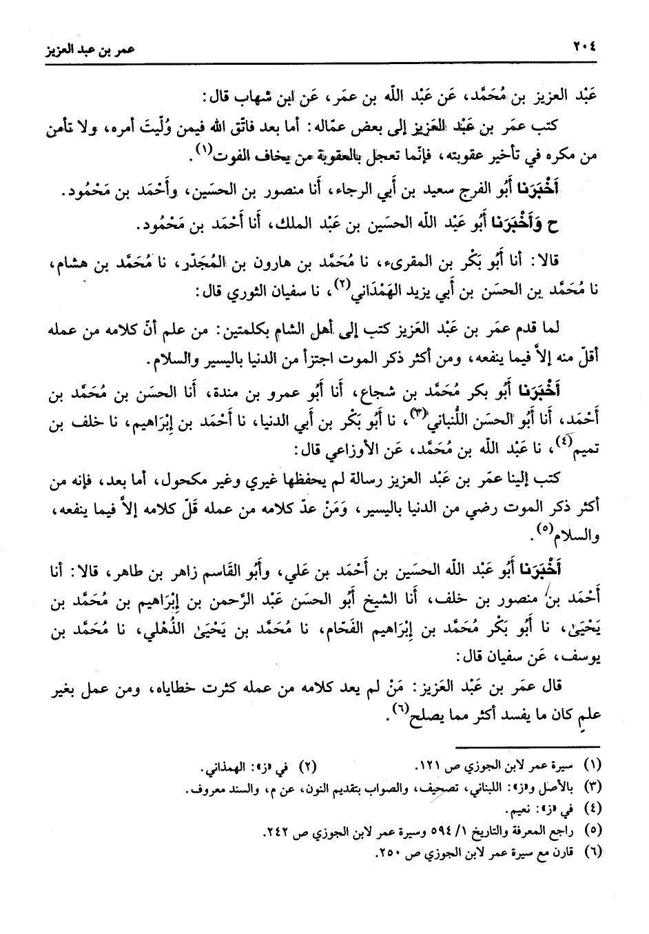 (6) قارن مع سيرة عمر لابن الجوزي ص 250
