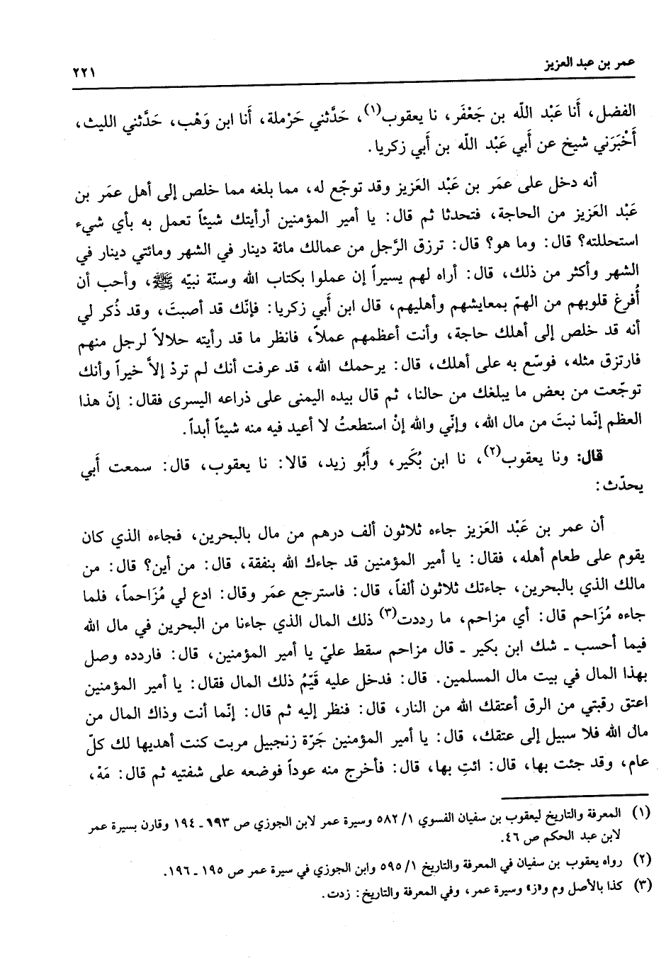 (1) المعرفة والتاريخ ليعقوب بن سفيان الفسوي 1 / 582 وسيرة عمر لابن الجوزي ص 193 - 194 وقارن بسيرة عمر لابن عبد الحكم ص 46