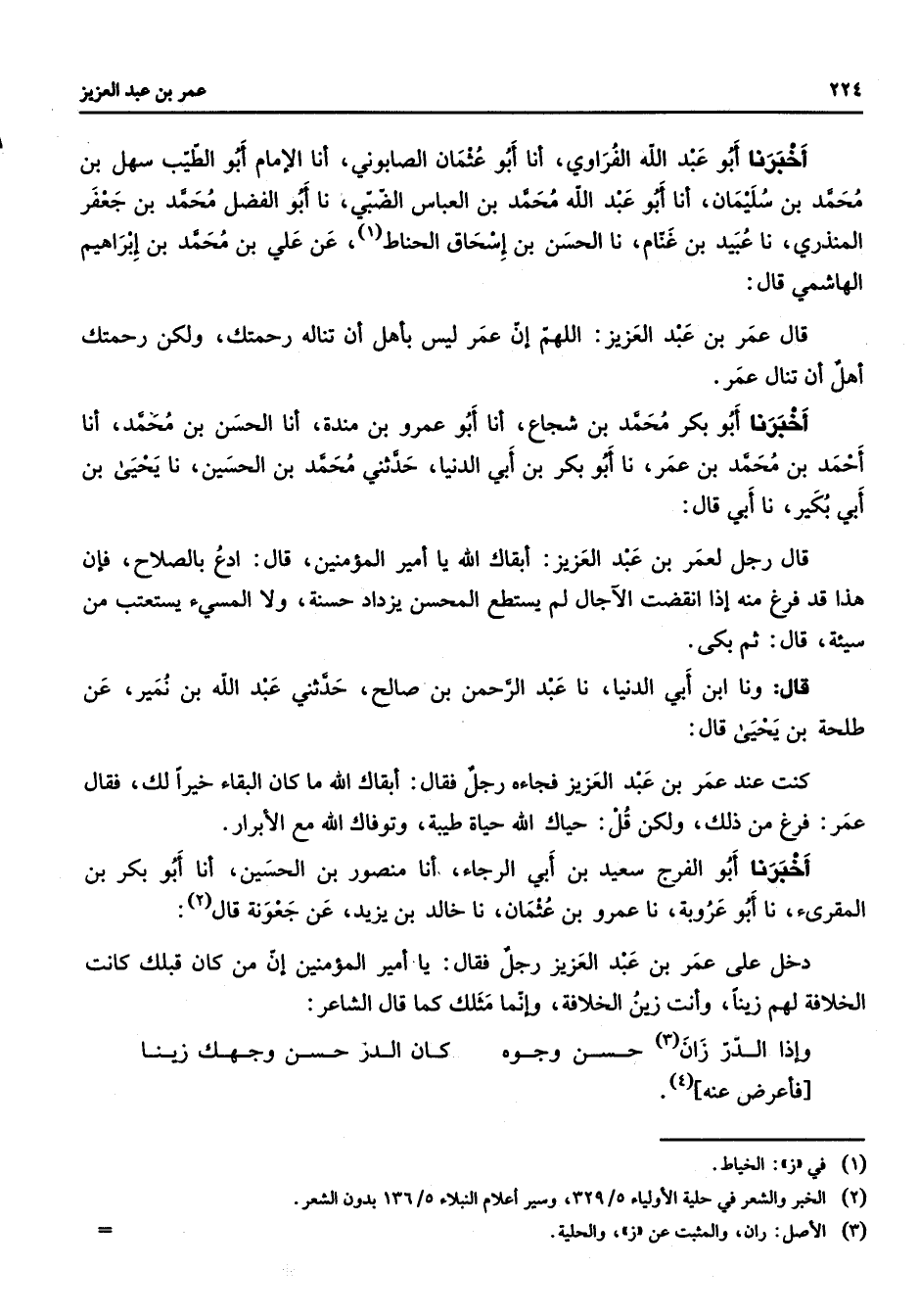 (2) الخبر والشعر في حلية الأولياء 5 / 329، وسير أعلام النبلاء 5 / 136 بدون الشعر