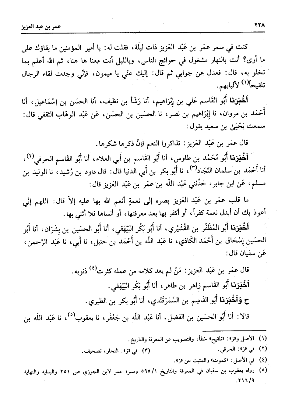 (5) رواه يعقوب بن سفيان في المعرفة والتاريخ 1 / 595 وسيرة عمر لابن الجوزي ص 251 والبداية والنهاية 9 / 216