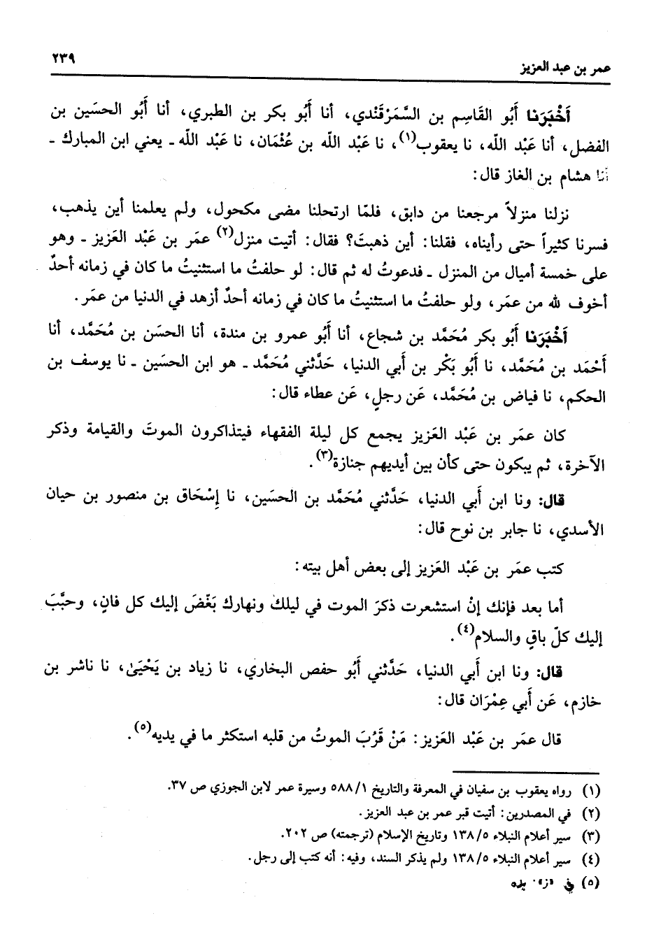 (1) رواه يعقوب بن سفيان في المعرفة والتاريخ 1 / 588 وسيرة عمر لابن الجوزي ص 37