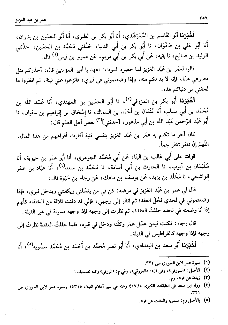 (4) رواه ابن سعد في الطبقات الكبرى 5 / 407 وعنه في سير أعلام النبلاء 5 / 143 وسيرة عمر لابن الجوزي ص 321