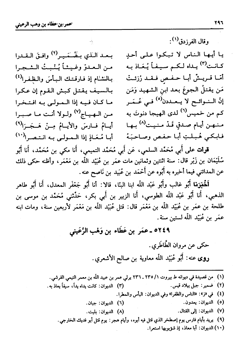 5249 - عمر بن عطاء بن وهب الرعيني حكى عن مروان الطاطري روى عنه أبو عبيد الله معاوية بن صالح الأشعري