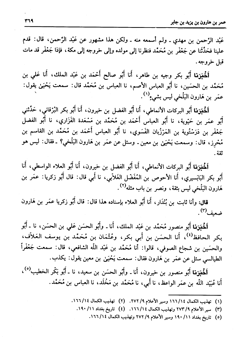 (5) تاريخ بغداد 11 / 190 وسير الأعلام 9 / 272 وتهذيب الكمال 14 / 166