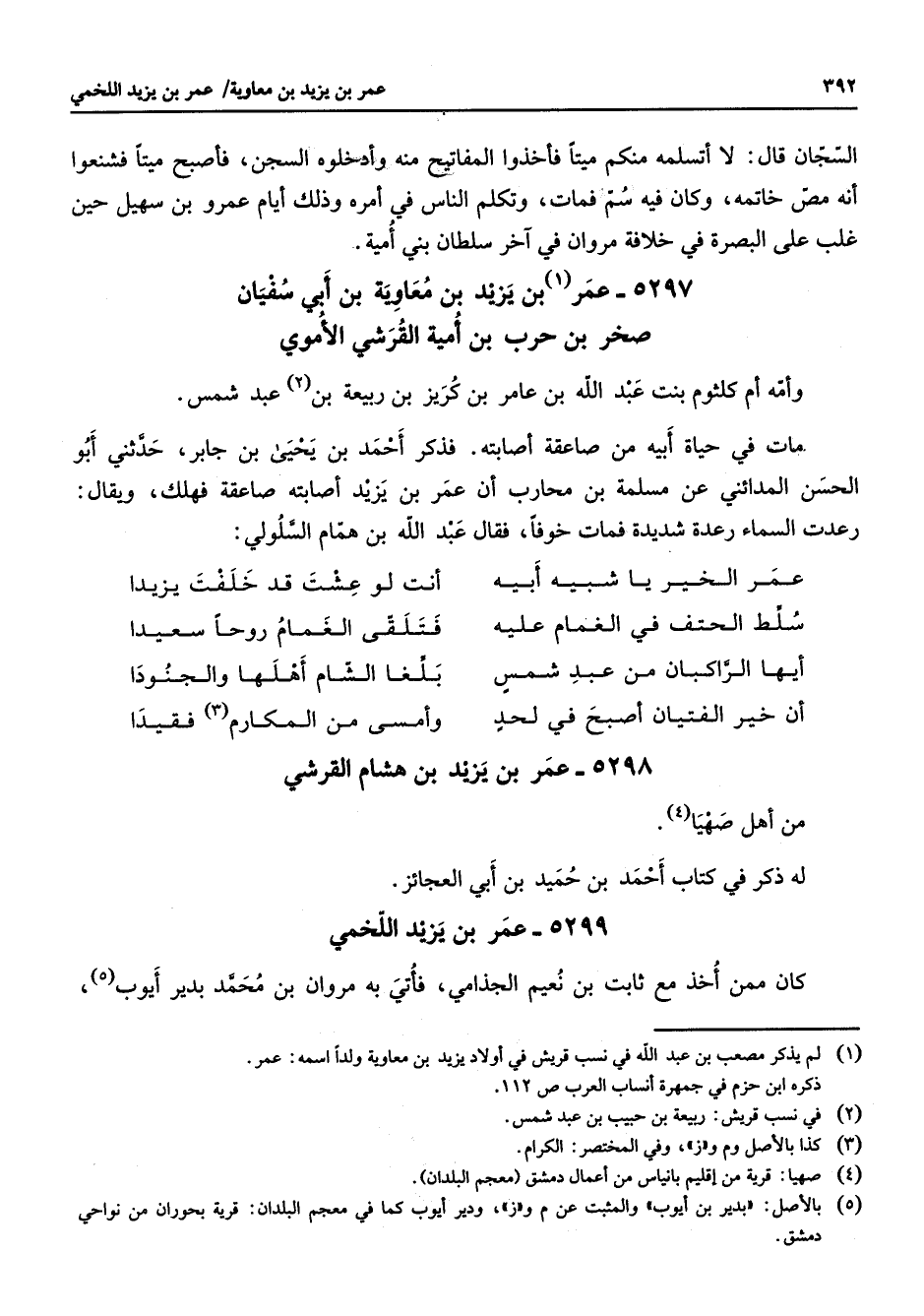 5298 - عمر بن يزيد بن هشام القرشي من أهل صهيا (4) له ذكر في كتاب أحمد بن حميد بن أبي العجائز