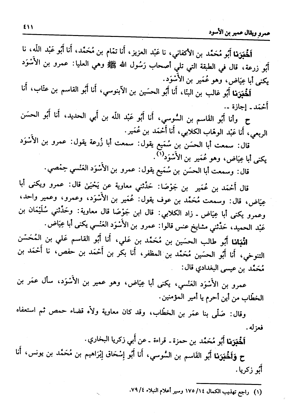 (1) راجع تهذيب الكمال 14 / 175 وسير أعلام النبلاء 4 / 79