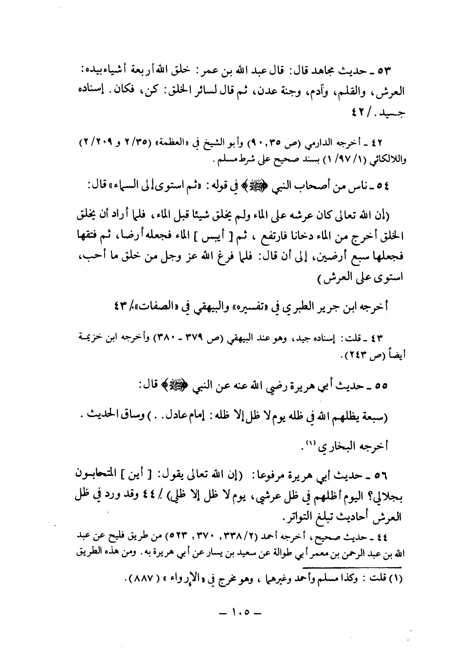 42- أخرجه الدارمي "ص35، 90" وأبو الشيخ في "العظمة" "35/ 2 و209/ 2" واللالكائي "1/ 97/ 1" بسند صحيح على شرط مسلم.