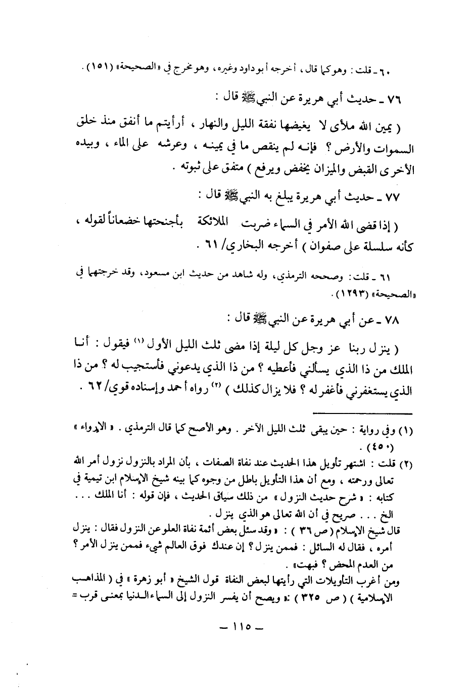 2 قلت: اشتهر تأويل هذا الحديث عند نفاة الصفات، بأن المراد بالنزول نزول أمر الله تعالى ورحمته، ومع أن هذ التأويل باطل من وجوه كما بينه شيخ الإسلام ابن تيمية في كتابه: "شحر حديث النزول". من ذلك سياق الحديث، فإن قوله: "أنا الملك ... إلخ ... صريح في أن الله تعالى هو الذي ينزل.
