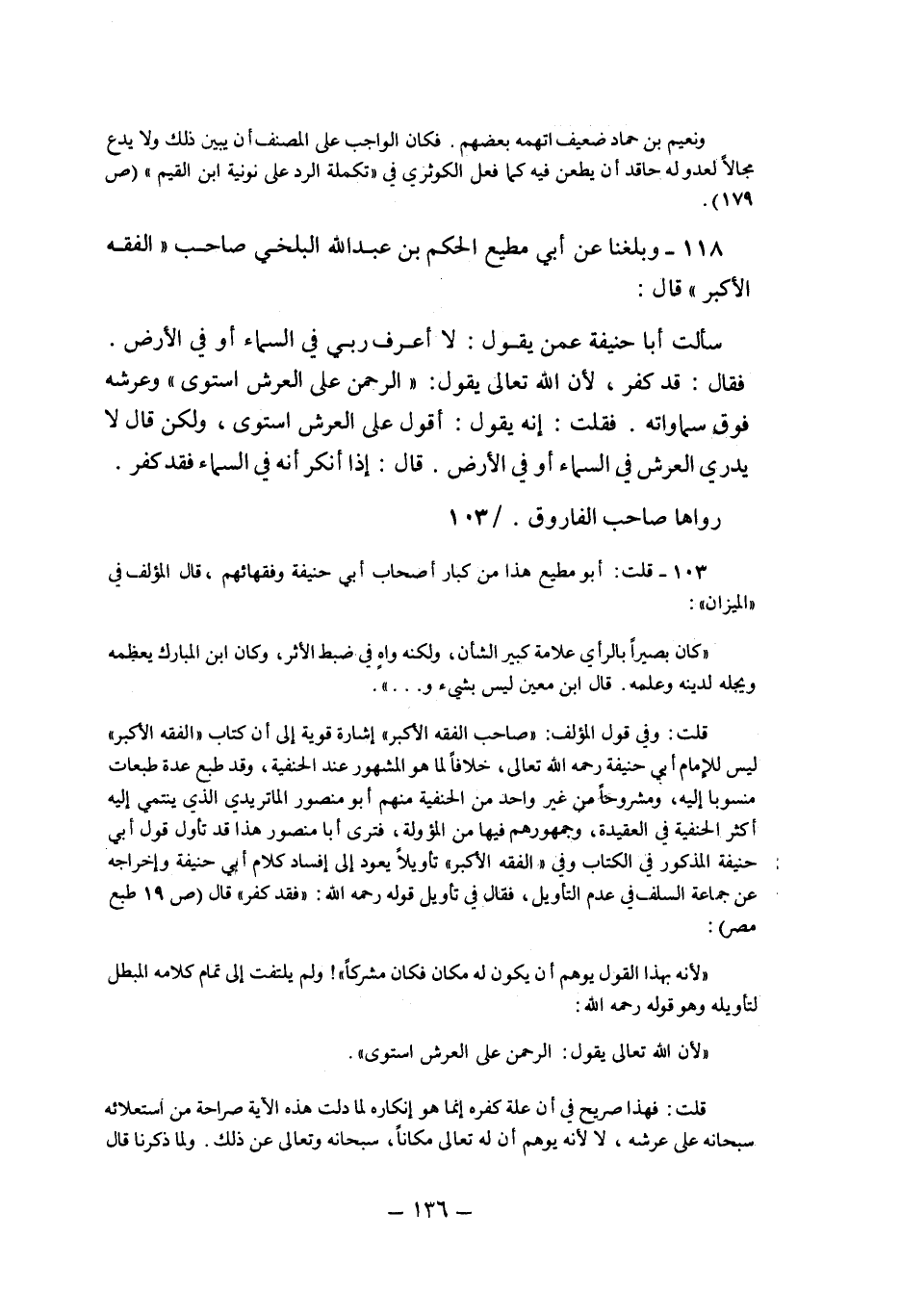 118- وبلغنا عن أبي مطيع الحكم بن عبد الله البلخي صاحب "الفقه الأكبر" قال: