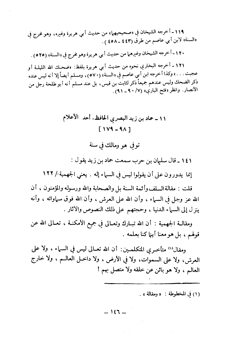 141- قال سليمان بن حرب سمعت حماد بن زيد يقول:
