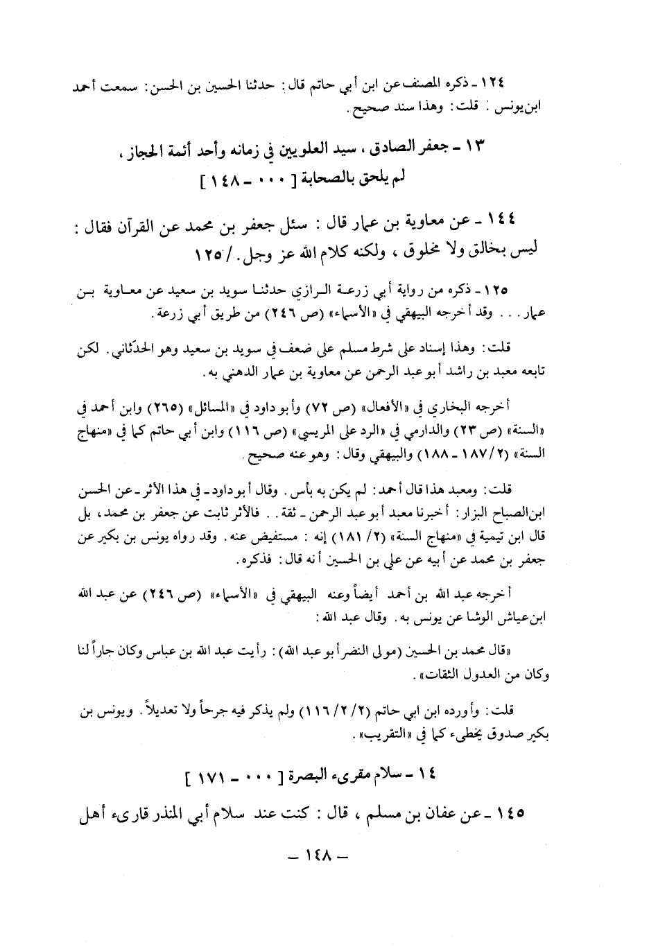 13- جعفر الصادق، سيد العلويين في زمانه وأحد أئمة الحجاز، لم يلحق بالصحابة " ... -148"