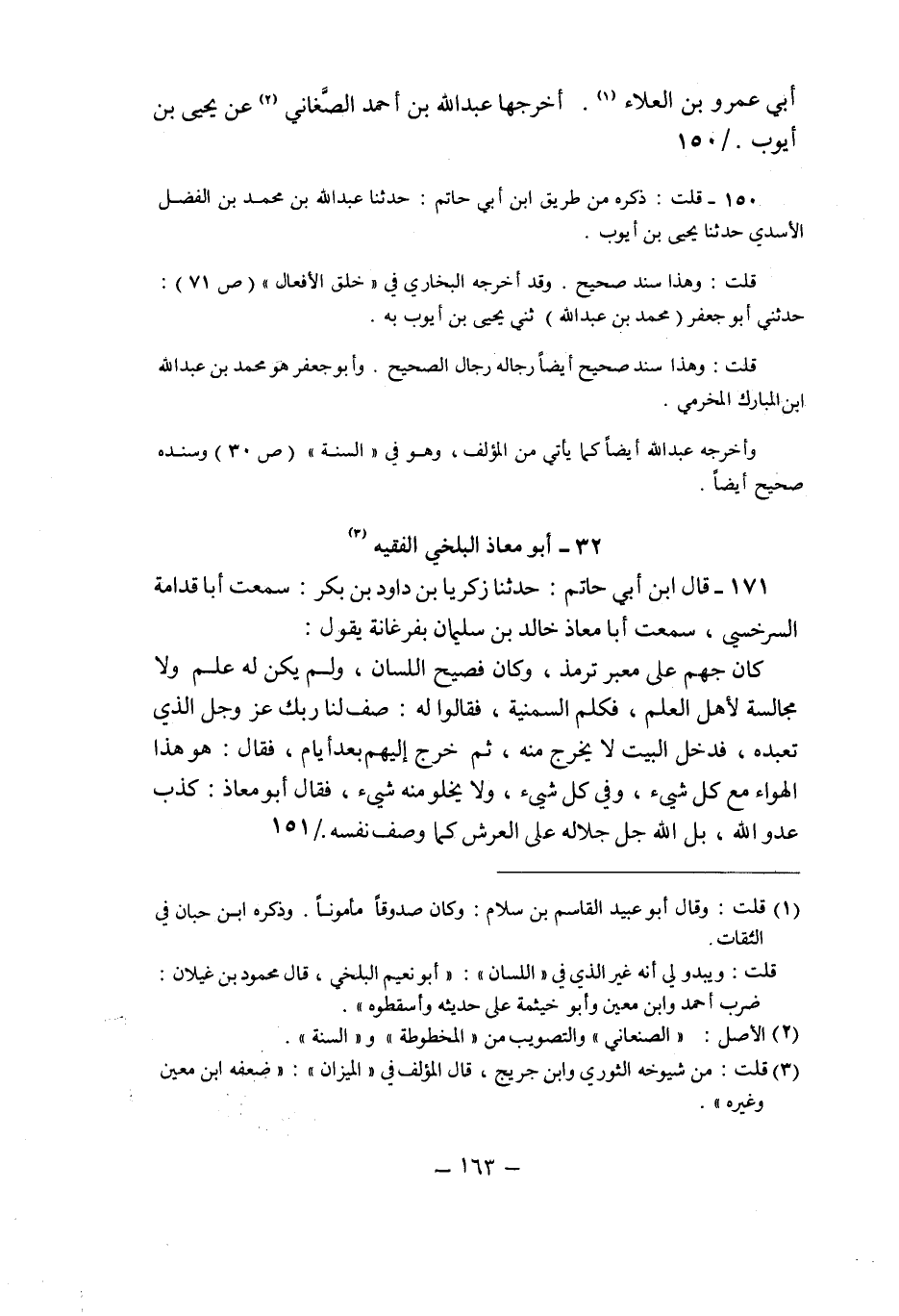 150- قلت: ذكره من طريق ابن أبي حاتم: حدثنا عبد الله بن محمد بن الفضل الأسدي حدثنا يحيى بن أيوب.