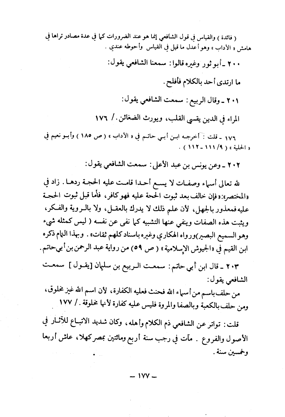 202- وعن يونس بن عبد الأعلى: سمعت الشافعي يقول: