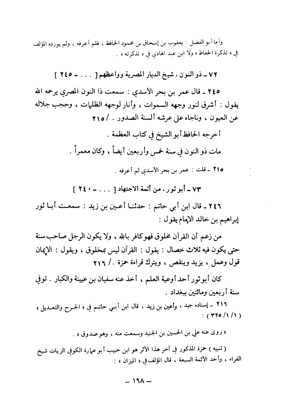 246- قال ابن أبي حاتم: حدثنا أعين بن زيد: سمعت أبا ثور إبراهيم بن خالد الإمام يقول: