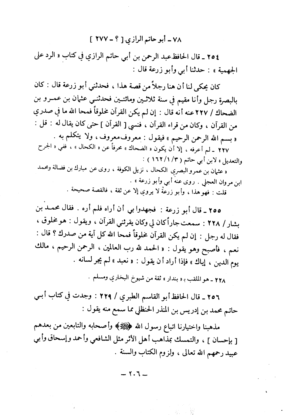 254- قال الحافظ عبد الرحمن بن أبي حاتم الرازي في كتاب "الرد على الجهمية": حدثنا أبي وأبو زرعة قال: