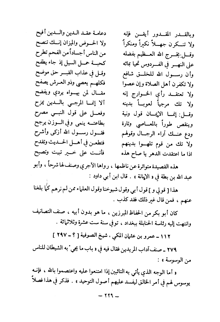 هذه القصيدة متواترة عن ناظمها، رواها الآجري وصنف لها شرحاً، وأبو عبد الله بن بطة في "الإبانة". قال ابن أبي داود: