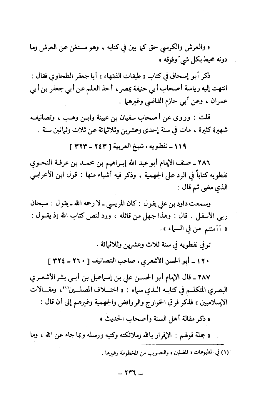 286- صنف الإمام أبو عبد الله إبراهيم بن محمد بن عرفة النحوي نفطويه كتابا في الرد على الجهمية، وذكر فيه أشياء منها: قول ابن الأعرابي الذي مضى ثم قال: