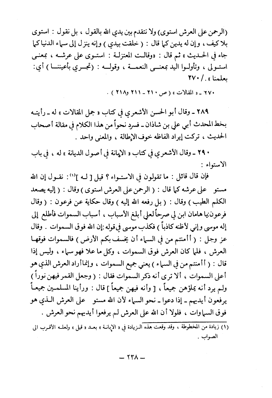 270 "المقالات" "ص210-211 و218".