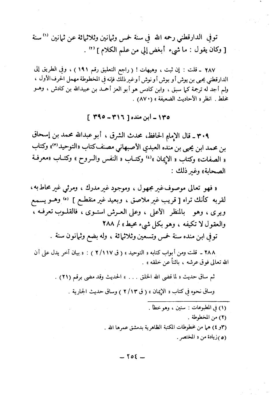 309- قال الإمام الحافظ، محدث الشرق، أبو عبد الله محمد بن إسحاق بن محمد بن يحيى بن منده العبدي الأصبهاني مصنف كتاب "التوحيد3" وكتاب "الصفات" وكتاب "الإيمان"4 وكتاب "النفس والروح" وكتاب "معرفة الصحابة" وغير ذلك: