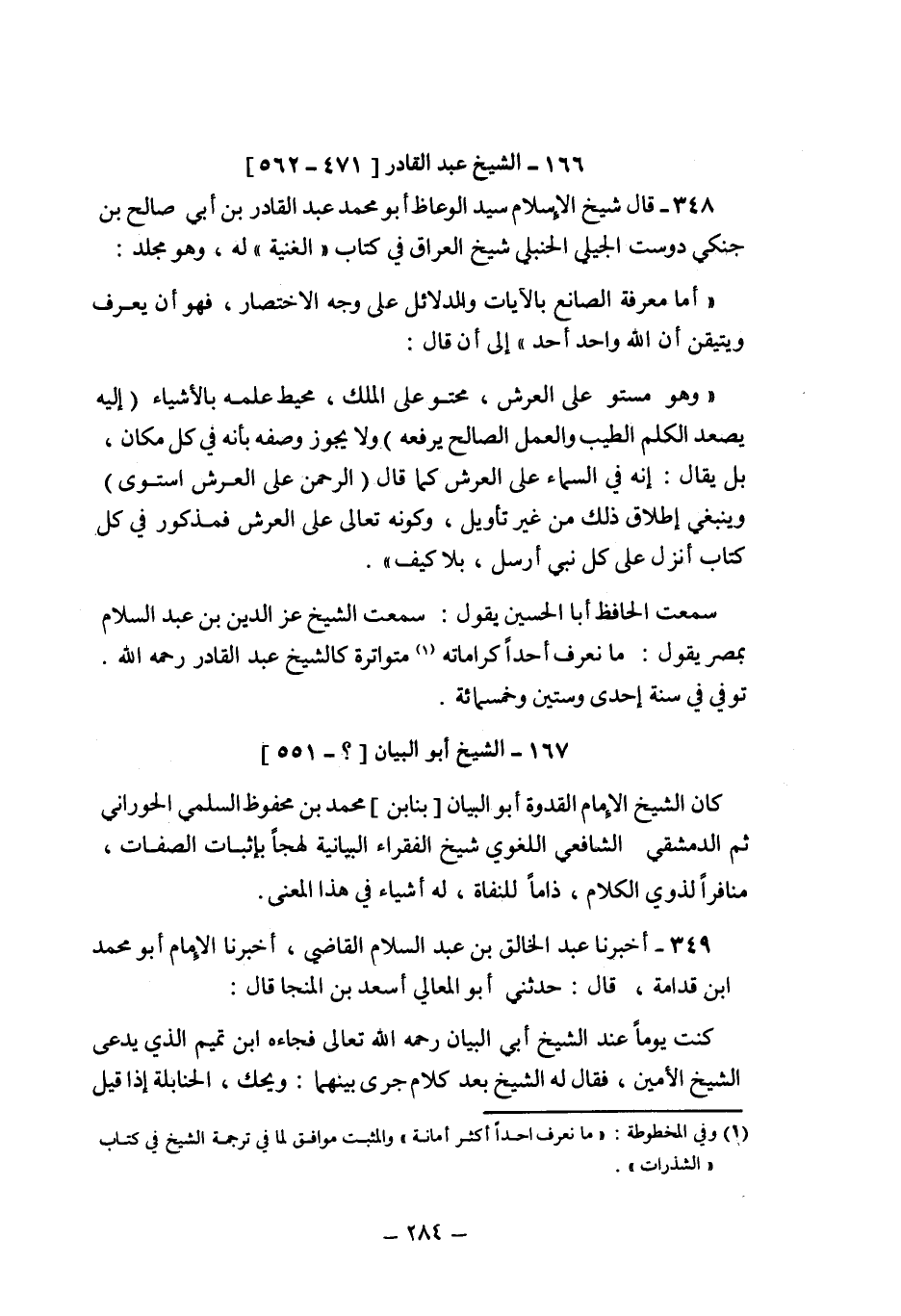 348- قال شيخ الإسلام سيد الوعاظ أبو محمد عبد القادر بن أبي صالح بن جنكي دوست الجيلي شيخ العراق في كتاب "الغنية" له، وهو مجلد: