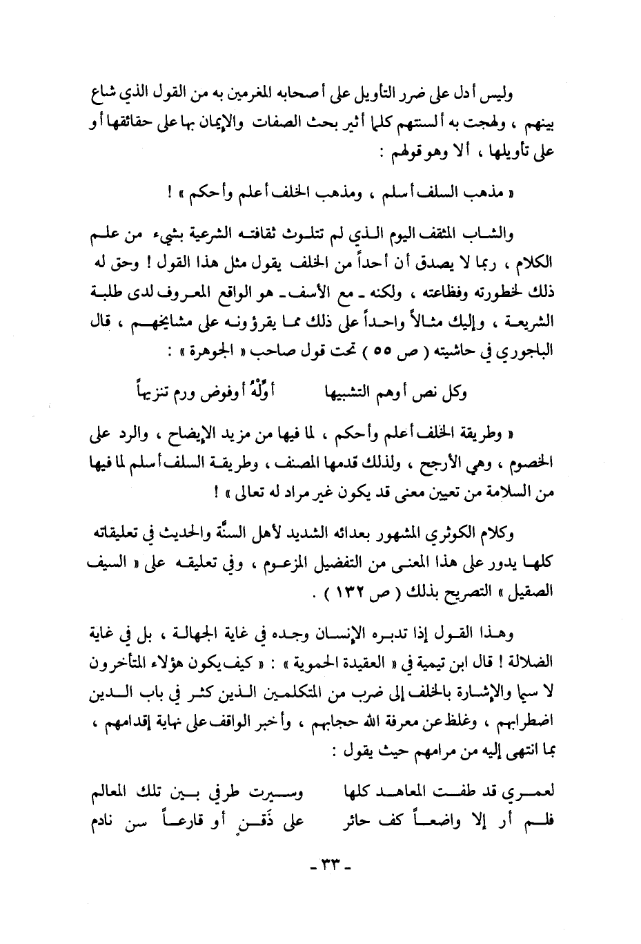 " مذهب السلف أسلم ومذهب الخلف أعلم وأحكم "