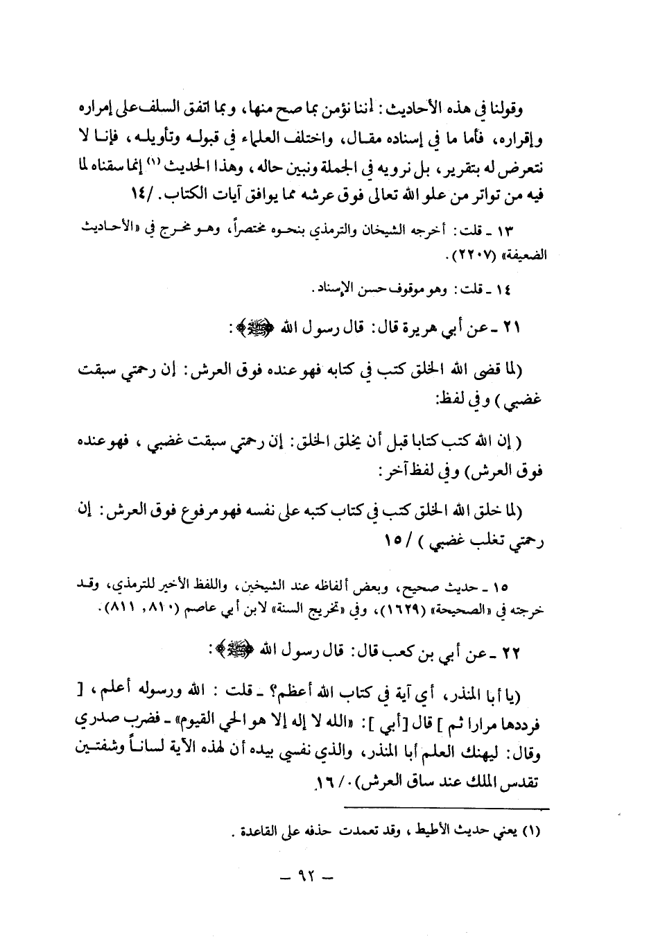 1 يعني حديث الأطيط، وقد تعمدت حذفه على القاعدة.