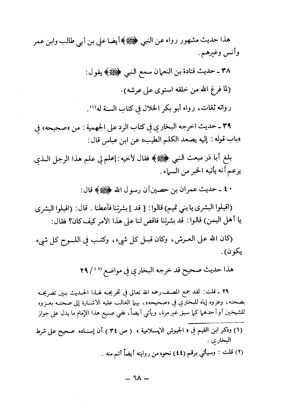 40- حديث عِمْرَانَ بْنِ حُصَيْنٍ أَنَّ رَسُولَ الله صلى الله عليه وسلم قَالَ: