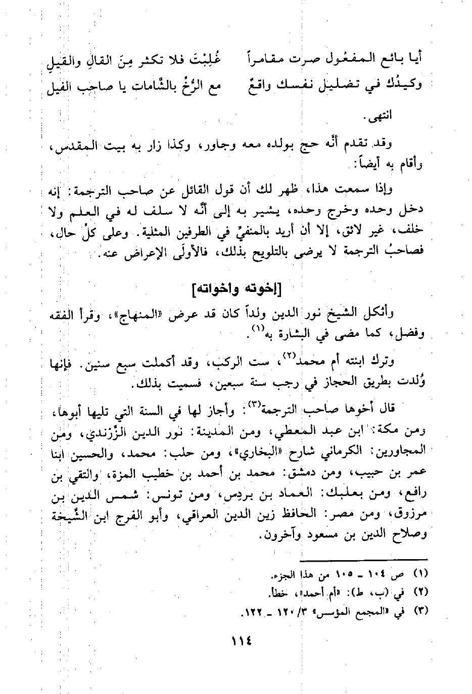 وأثكل الشيخ نور الدين ولدًا كان قد عرض "المنهاج"، وقرأ الفقه وفضل، كما مضى في البشارة به (¬1).