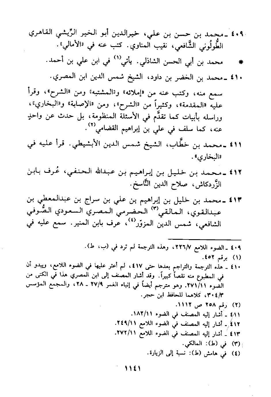 410 - هذه التَّرجمة والتراجم بعدها حتَّى 417، لم أعثر عليها في الضوء اللامع، ويبدو أن في المطبوع منه نقصًا كبيرًا. وقد أشار المصنف إلى ابن المصري هذا في الكنى مِنْ الضوء 11/ 271. وهو مترجم أيضًا في إنباء الغمر 9/ 27 - 28، والمجمع المؤسس 3/ 304، كلاهما للحافظ ابن حجر.