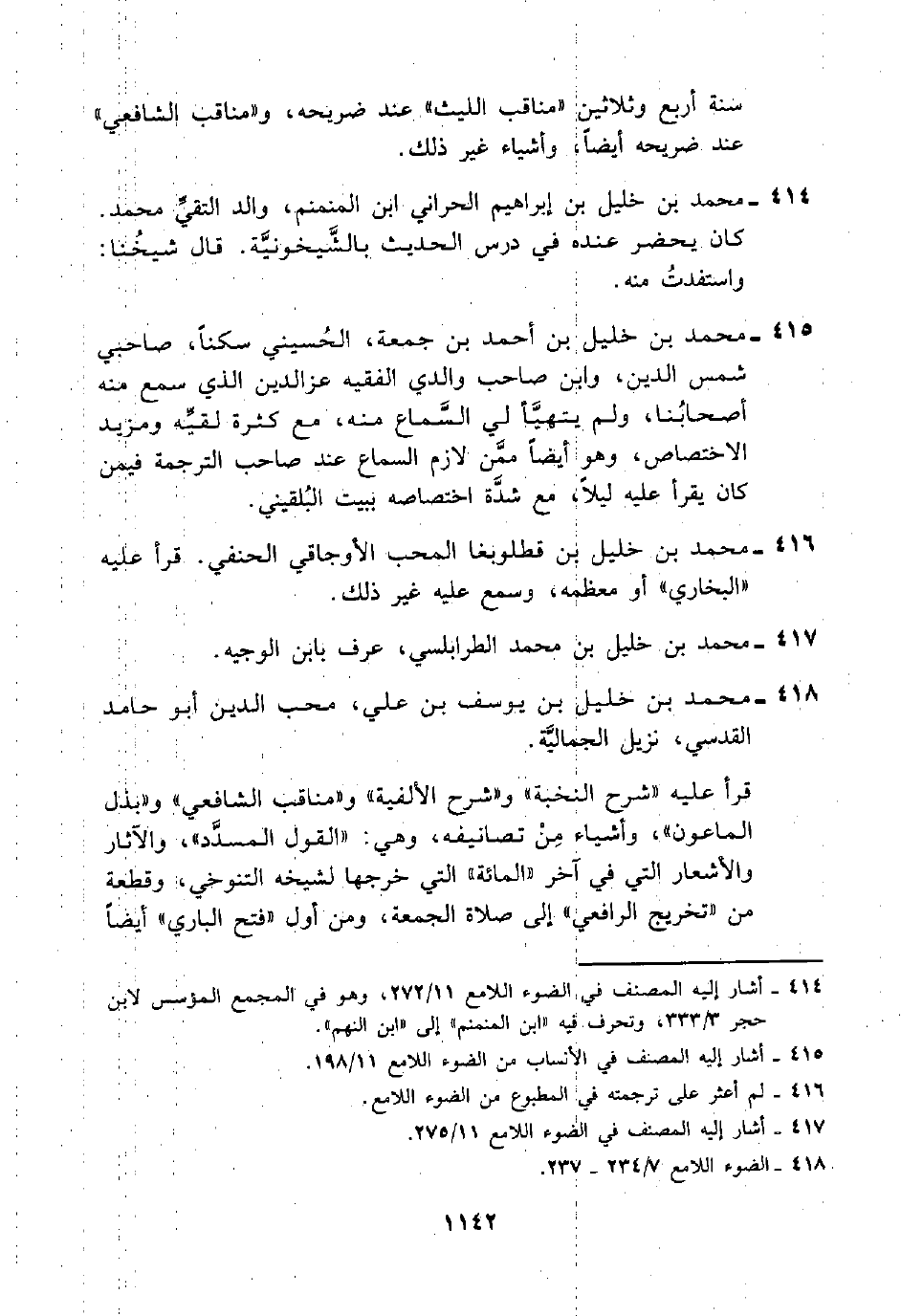 416 - محمد بن خليل بن قطلوبغا المحب الأوجاقي الحنفي. قرأ عليه "البخاري" أو معظمه، وسمع عليه غير ذلك.