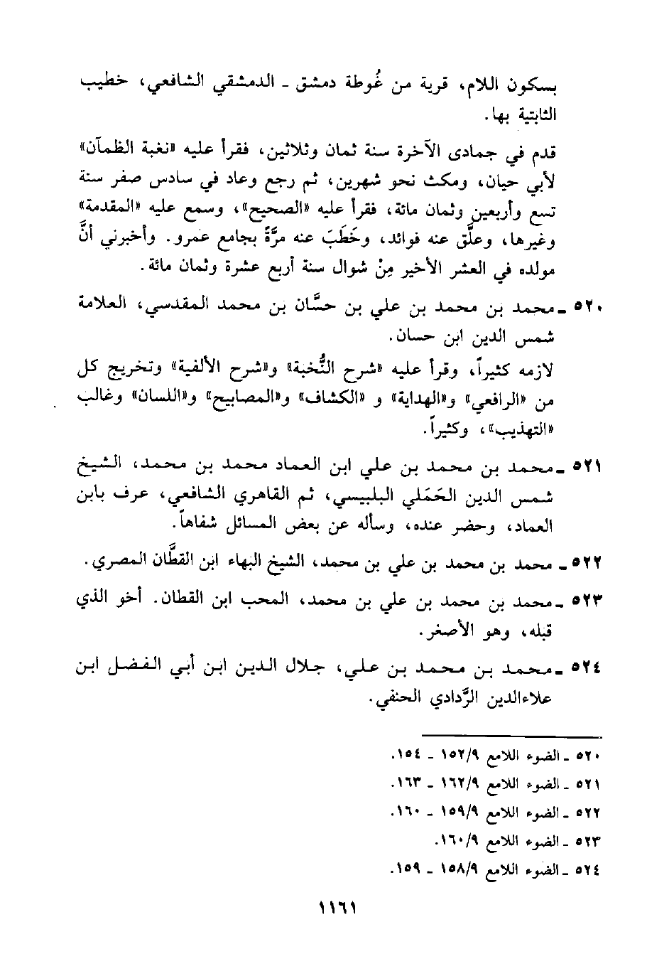 520 - محمد بن محمد بن علي بن حسَّان بن محمد المقدسي، العلامة شمس الدين ابن حسَّان.