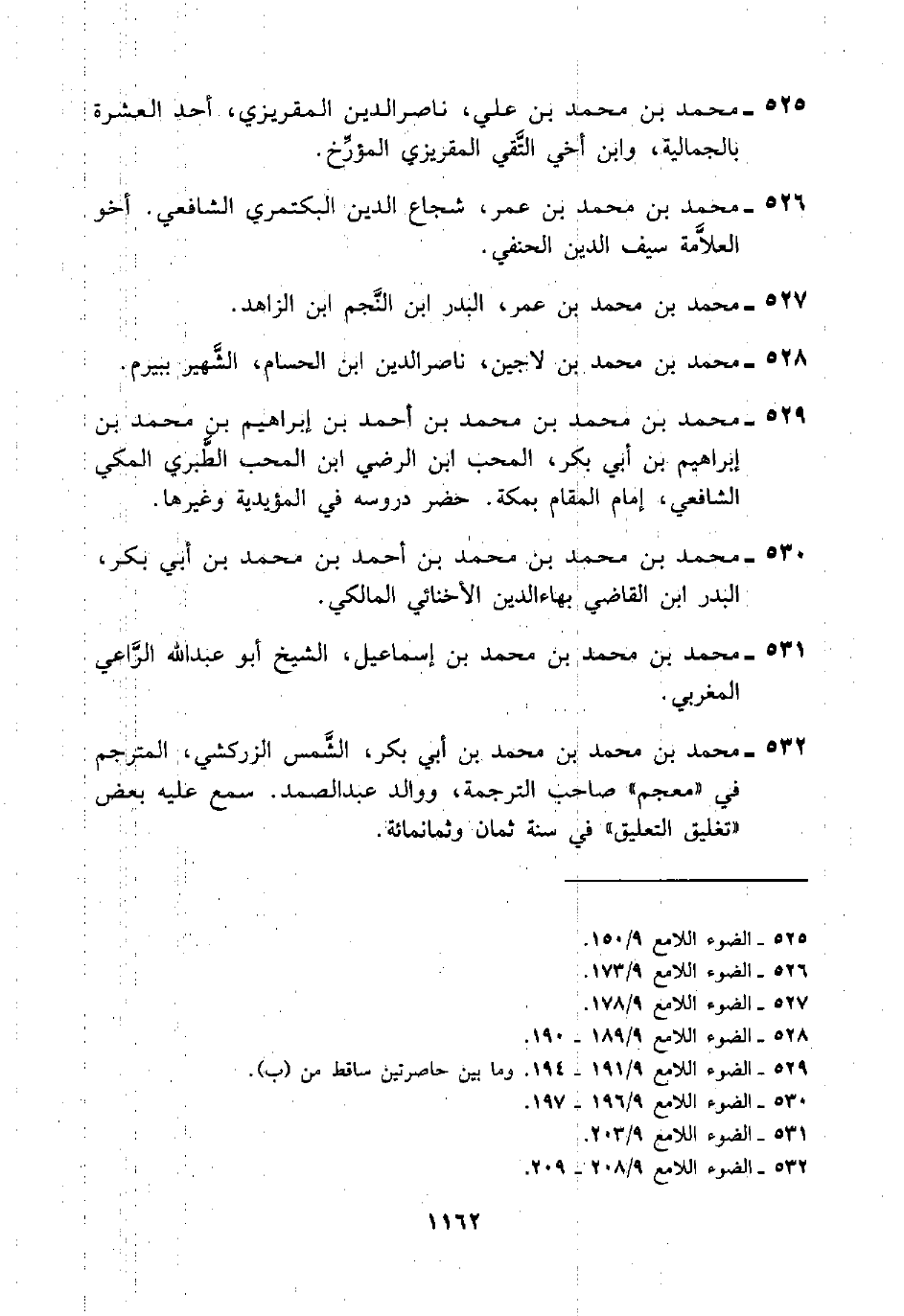 529 - محمد بن محمد بن محمد بن أحمد بن إبراهيم بن محمد بن إبراهيم بن أبي بكر، المحب ابن الرضي ابن الححب الطَّبري المكي الشَّافعي، إمام المقام بمكة. حضر دروسه في المؤيدية وغيرها.