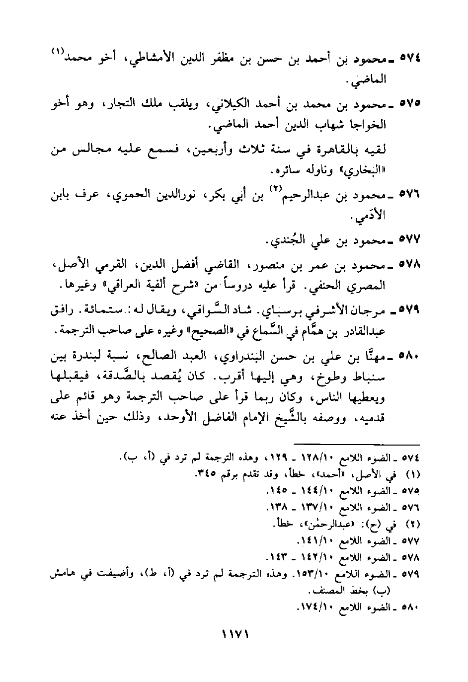 575 - محمود بن محمد بن أحمد الكيلاني، ويلقب ملك التجار، وهو أخو الخواجا شهاب الدين أحمد الماضي.
