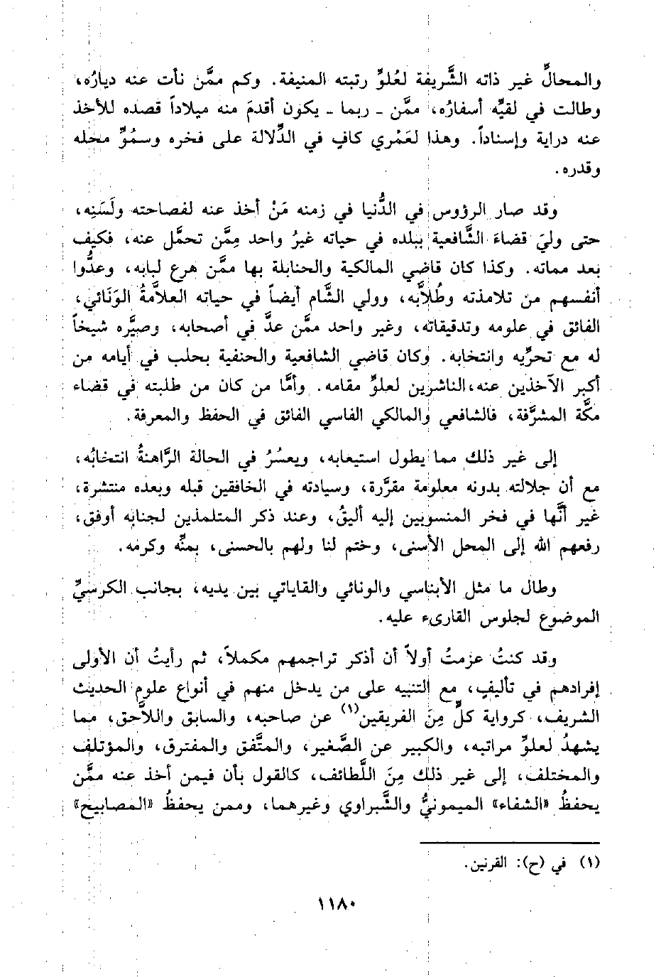 والمحالِّ غير ذاته الشَّريفة لعُلوِّ رتبته المنيفة. وكم ممَّن نأت عنه ديارُه، وطالت في لقيِّه أسفارُه، ممَّن -ربما- يكون أقدمَ منه ميلادًا قصده للأخذ عنه دراية وإسنادًا. وهذا لعَمْري كافٍ في الدِّلالة على فخره وسمُوِّ محله وقدره.