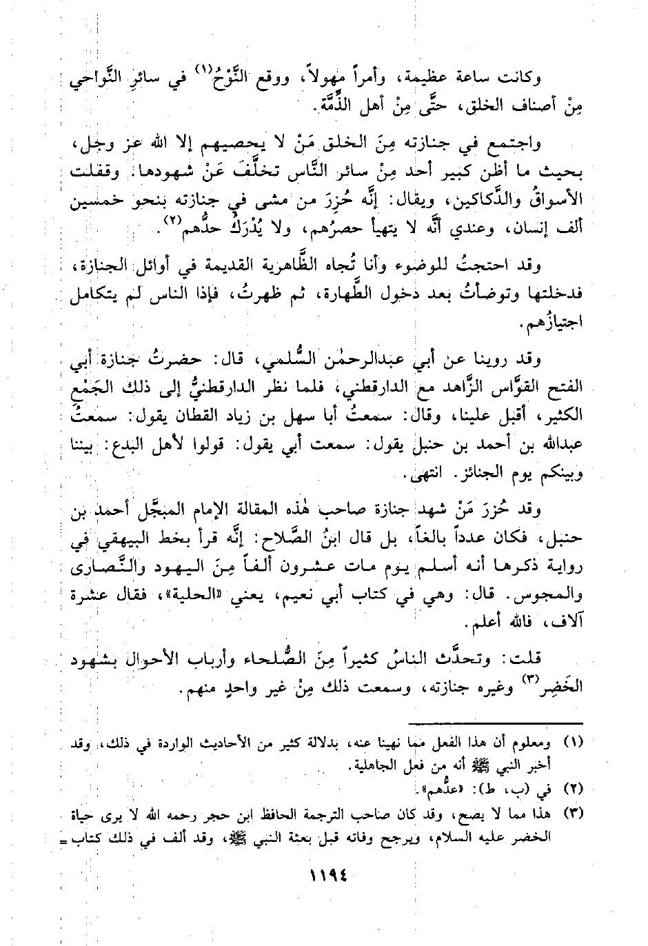 وقد حُزرَ مَنْ شهد جنازة صاحبُ هذه المقالة الإمام المبجَّل أحمد بن حنبل، فكان عددًا بالغًا، بل قال ابنُ الصَّلاح: إنَّه قرأ بخط البيهقي في رواية ذكرها أنَّه أسلم يوم مات عشرون ألفًا مِنَ اليهود والنَّصارى والمجوس. قال: وهي في كتاب أبي نعيم، يعني "الحلية"، فقال عشرة آلاف، فاللَّه أعلم.
