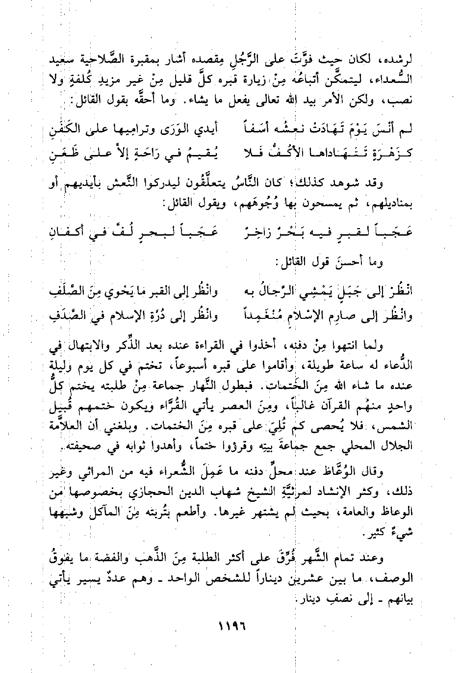 لرشده، لكان حيث فوَّتَ على الرَّجُلِ مِقصده أشار بمقبرة الصَّلاحية سعيد السُّعداء، ليتمكَّن أتباعُه مِنْ زيارة قبره كلَّ قليل مِنْ غير مزيدِ كُلفةٍ ولا نصب، ولكن الأمر بيد اللَّه تعالى يفعل ما يشاء. وما أحقَّه بقول القائل: