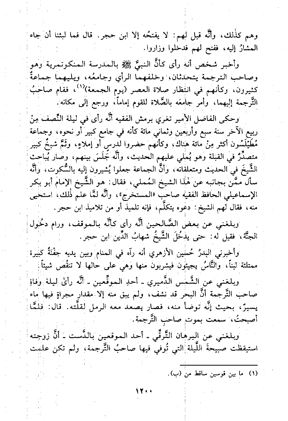 وبلغني عن بعض الصَّالحين أنَّه رأى كأنَّه بالموقف، ورام دخُول الجنَّة، فقيل له: حتى يدخُلَ الشَّيخُ شهابُ الدِّين ابن حجر.