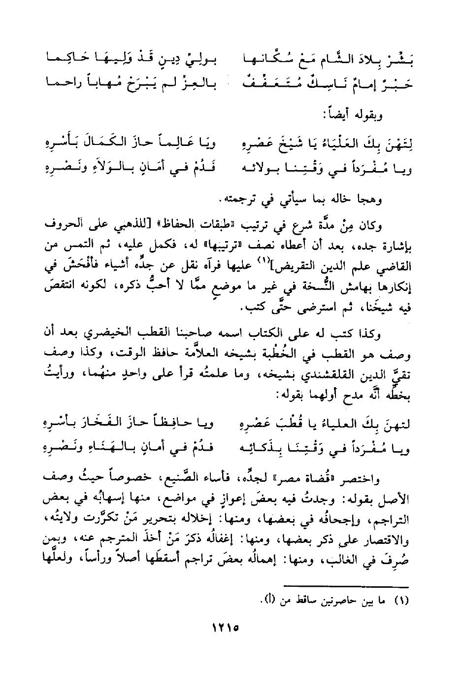 لتهنَ بِكَ العلياءُ يا قُطْبَ عَصْرهِ ... ويا حافِظًا حازَ الفَخَارَ بأسْرِهِ