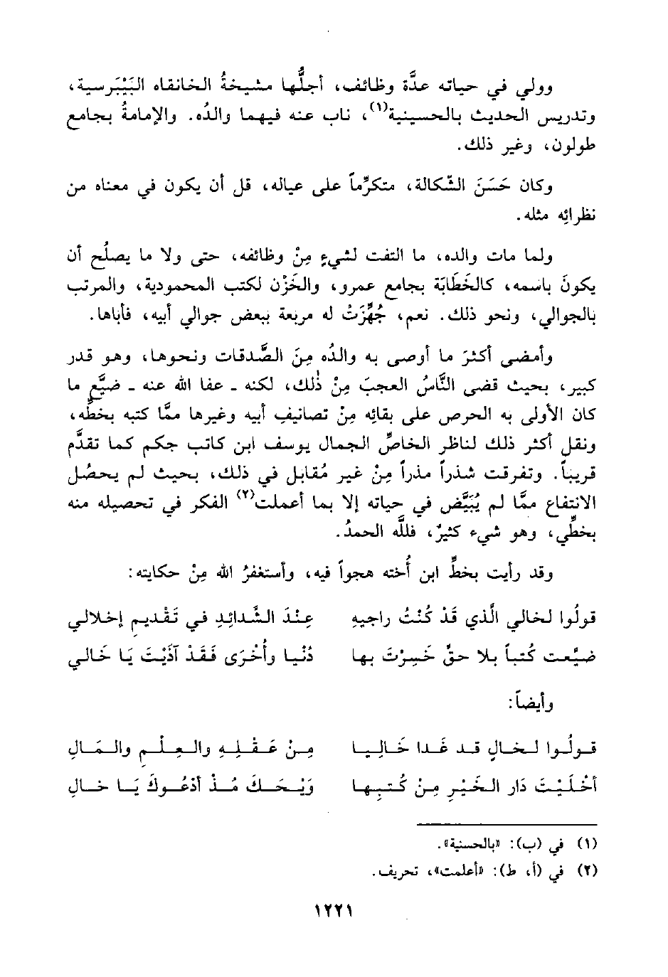 ضيَّعت كُتبًا بلا حقٍّ خَسِرْتَ بها ... دُنْيا وأُخْرَى فَقَد آذيْتَ يَا خَالي