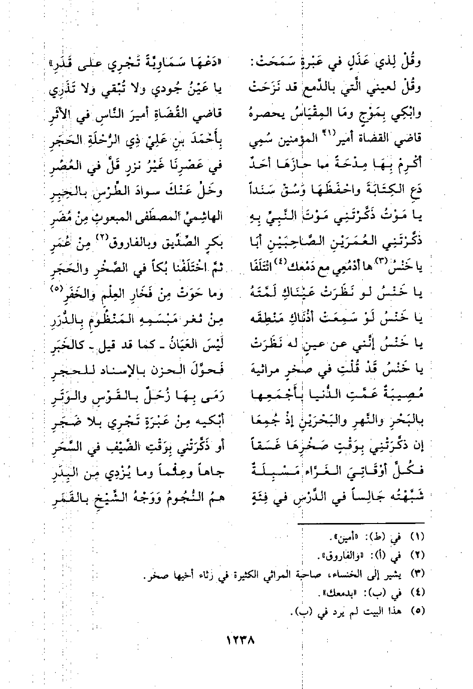 يا خَنْسُ لو نَظَرَت عَينَاكِ لَمَّتَهُ ... وما حَوَتْ مِنْ فَخار العِلْمِ والخَفَر (¬5)