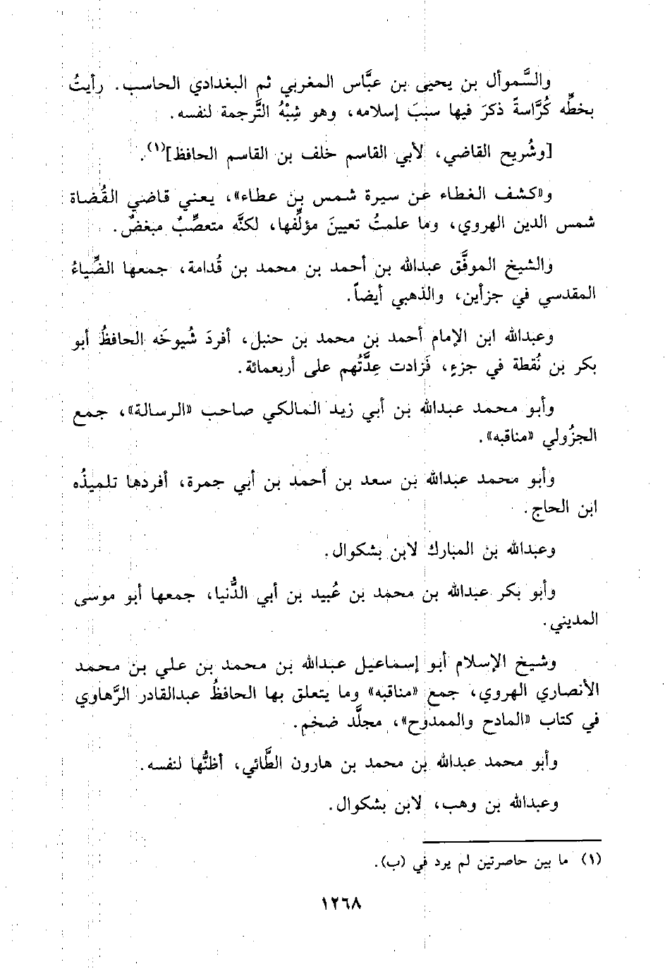 وعبد اللَّه ابن الإمام أحمد بن محمد بن حنبل، أفردَ شُيوخَه الحافظُ أبو بكر بن نُقطة في جزءٍ، فَزادت عِدَّتُهم على أربعمائة.
