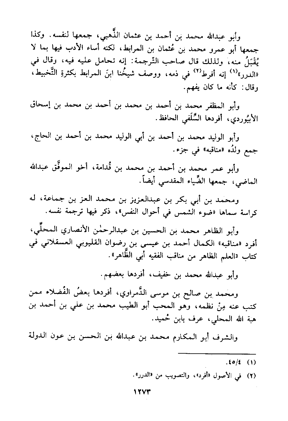 وأبو عبد اللَّه محمد بن أحمد بن عثمان الذَّهبي، جمعها لنفسه. وكذا جمعها أبو عمرو محمد بن عُثمان بن المرابط، لكنه أساء الأدب فيها بما لا يُقْبَلُ منه، ولذلك قال صاحبُ التَّرجمة: إنه تحامل عليه فيه، وقال في "الدرر" (¬1) إنه أفرط (¬2) فى ذمه، ووصف شيخُنا ابنَ المرابط بكثرةِ التَّخبيط، وقال: كأنه ما كان يفهم.