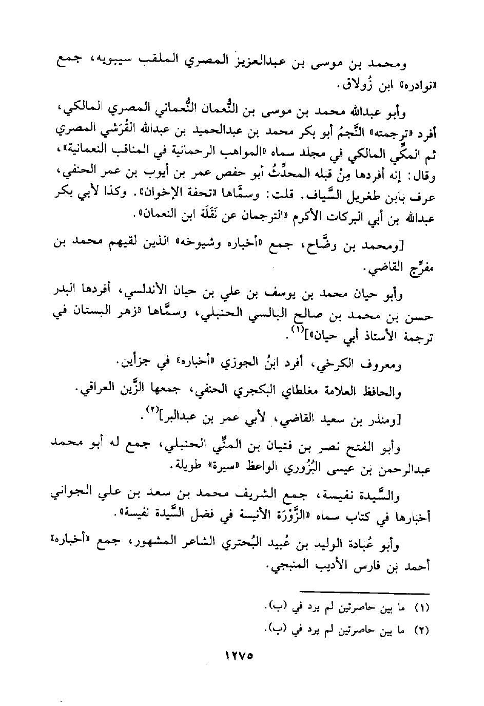 ومحمد بن موسى بن عبد العزيز المصري الملقب سيبويه، جمع "نوادره" ابن زُولاق.