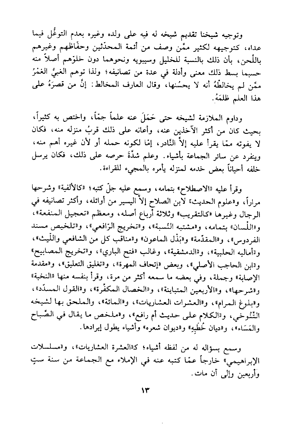 وتوجيه شيخنا تقديم شيخه له فيه على ولده وغيره بعدم التوغُّل فيما عداه، كتوجيهه لكثير ممَّن وصف من أئمة المحدّثين وحفّاظهم وغيرهم باللَّحن، بأن ذلك بالنسبة للخليل وسيبويه ونحوهما دون خلوّهم أصلًا منه حسبما بسط ذلك معنى وأدلة في عدة من تصانيفه؛ ولذا توهم الغبيُّ الغمْرُ ممَّن لم يخالطْهُ أنه لا يحسُنها، وقال العارف المخالط: إنَّ من قصرَهُ على هذا العلم ظلمَهُ.