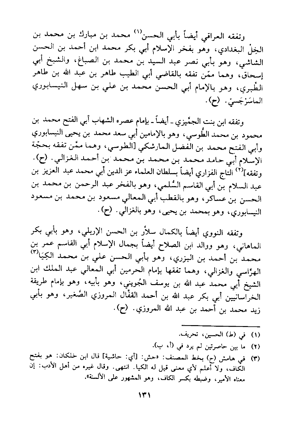 (¬3) في هامش (ح) بخط المصنف: "حش: [أي: حاشية] قال ابن خلكان: هو بفتح الكاف، ولا أعلم لأي معنى قيل له الكيا. انتهى. وقال غيره من أهل الأدب: إن معناه الأمير، وضبطه بكسر الكاف، وهو المشهور على الألسنة".