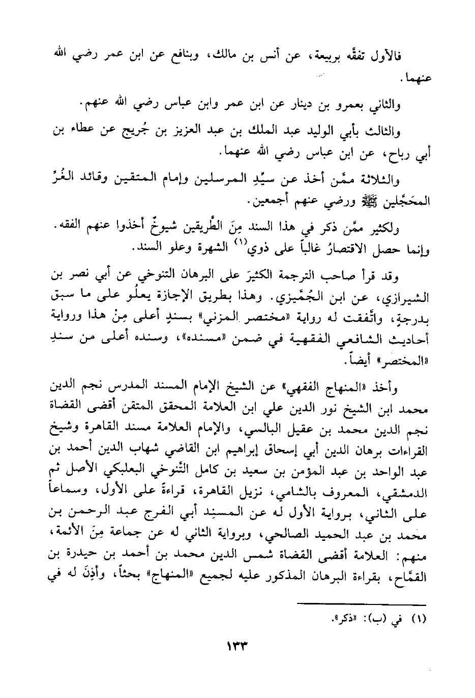 ولكثير ممَّن ذكر في هذا السند مِنَ الطَّريقين شيوخٌ أخذوا عنهم الفقه. وإنما حصل الاقتصارُ غالبًا على ذوي (¬1) الشهرة وعلو السند.