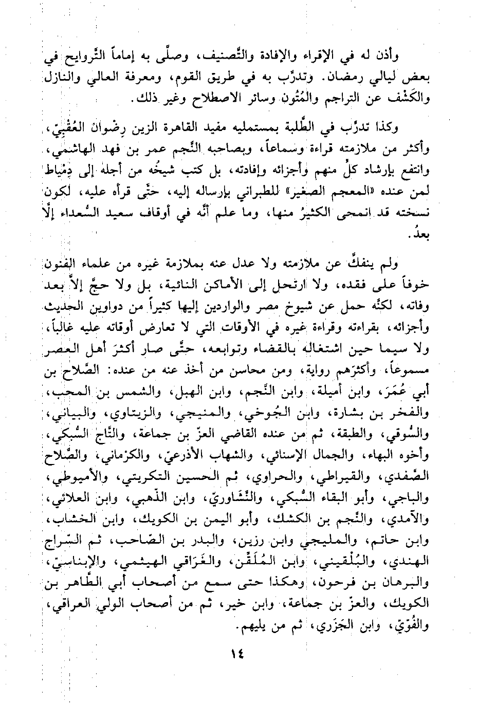وكذا تدرَّب في الطَّلبة بمستمليه مفيد القاهرة الزين رِضوان العُقْبِيّ، وأكثر من ملازمته قراءة وسماعًا، وبصاحبه النَّجم عمر بن فهد الهاشمي، وانتفع بإرشاد كلٍّ منهم وأجزائه وإفادته، بل كتب شيخُه من أجله إلى دمياط لمن عنده "المعجم الصغير" للطبراني بإرساله إليه، حتى قرأه عليه، لكون نسخته قد انمحى الكثيرُ منها، وما علم أنَّه في أوقات سعيد السُّعداء إلَّا بعدُ.