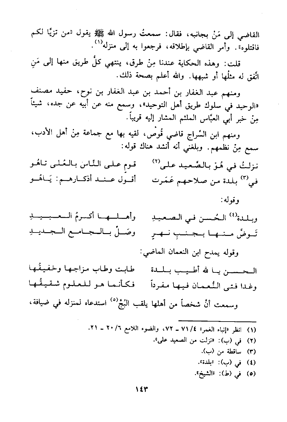 ومنهم ابن السَّراج قاضي قُوص، لقيه بها مع جماعة مِنْ أهل الأدب، سمع مِنْ نظمهم. وبلغني أنه أنشد هناك قوله: